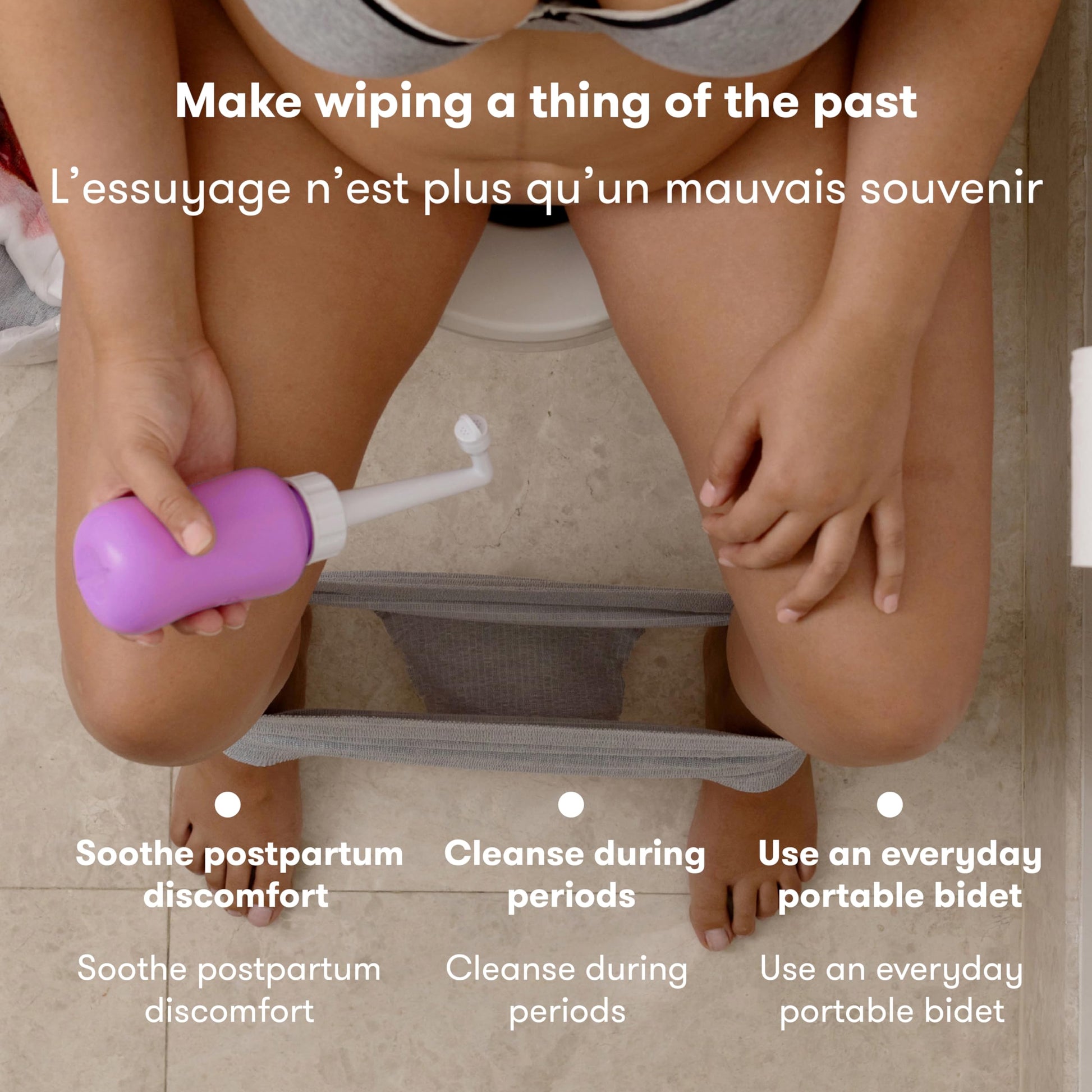 Fill with warm water, screw the cap, invert, and gently squeeze to cleanse after childbirth or surgery.
